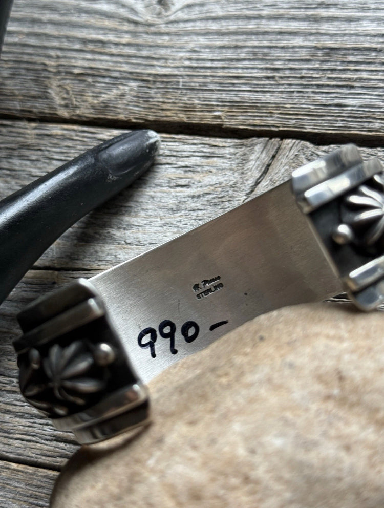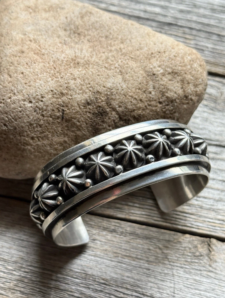 Navajo 925 Sterling Silver Stacker Stamped Cuff Bracelet. Artist: Happy Piasso Weight: 89 grams Gap: 1.25 inch Width: 1 inch Inside Measure: 5.75 inches Fits 7 Inch wrist Best Offers Accepted! |