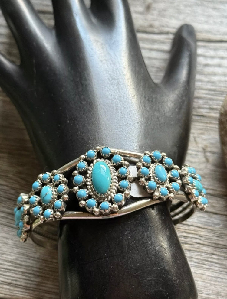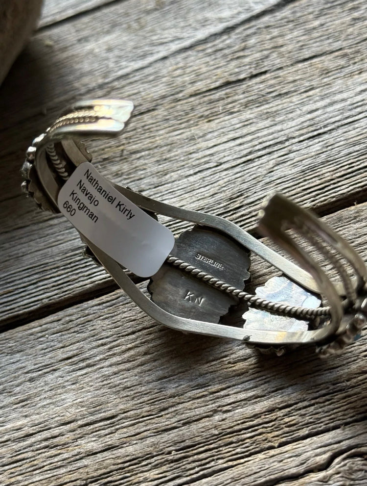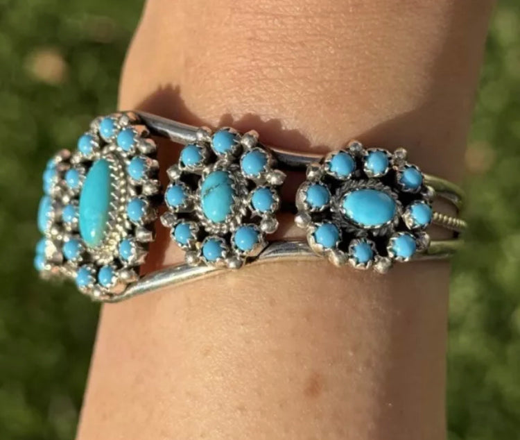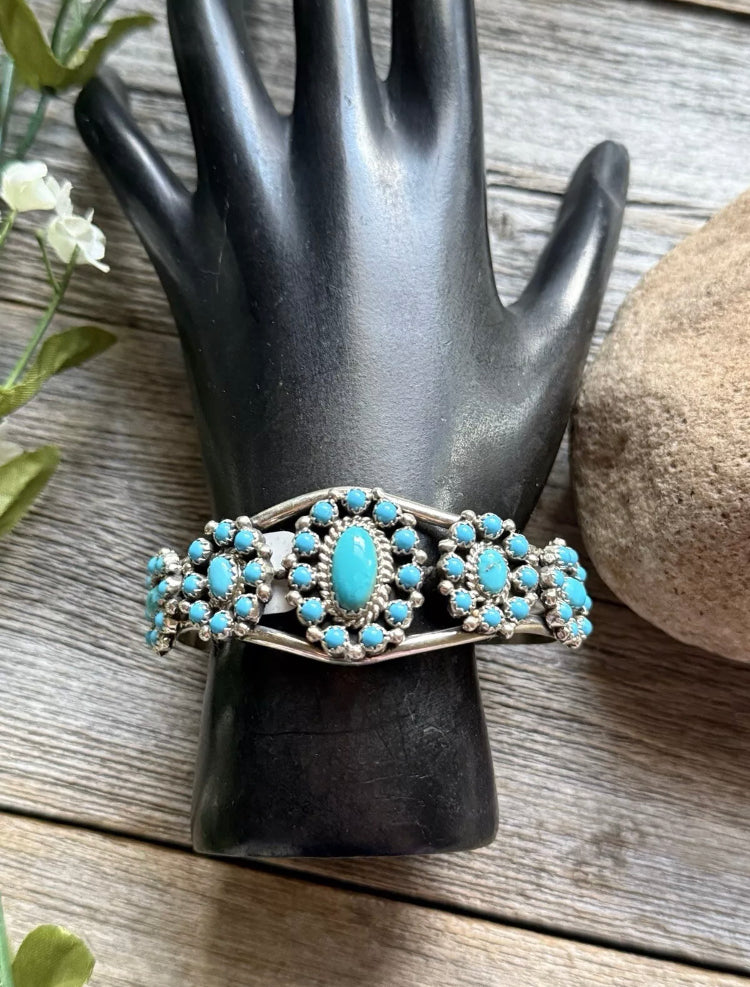 Navajo Native Sterling Silver Turquoise Cluster Cuff Bracelet Nathaniel Kirly
