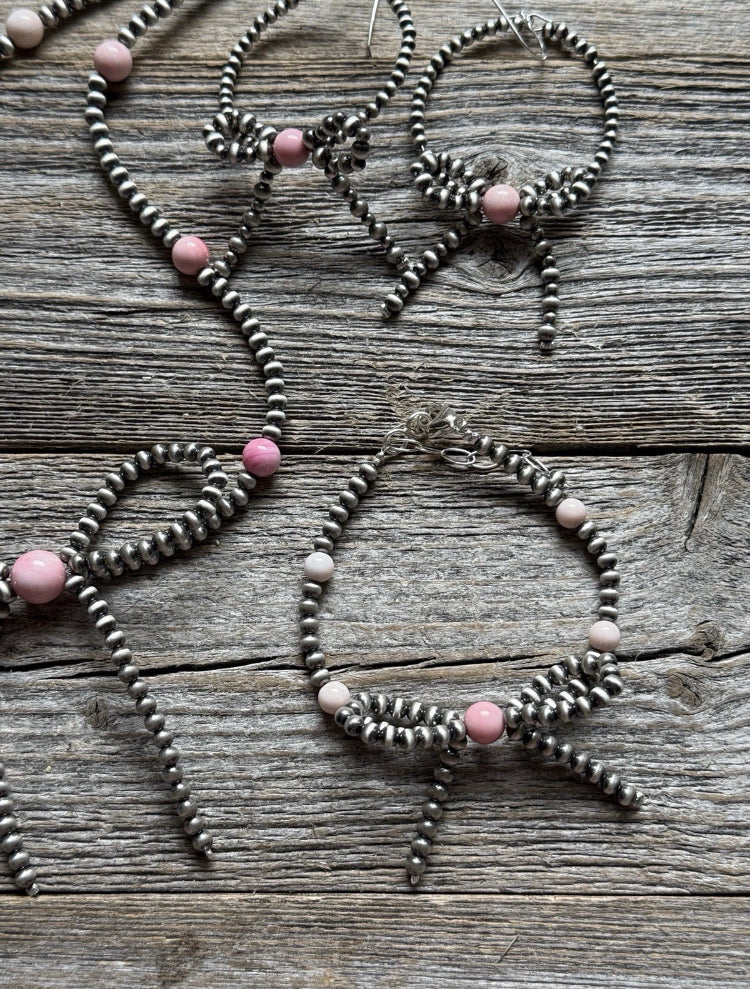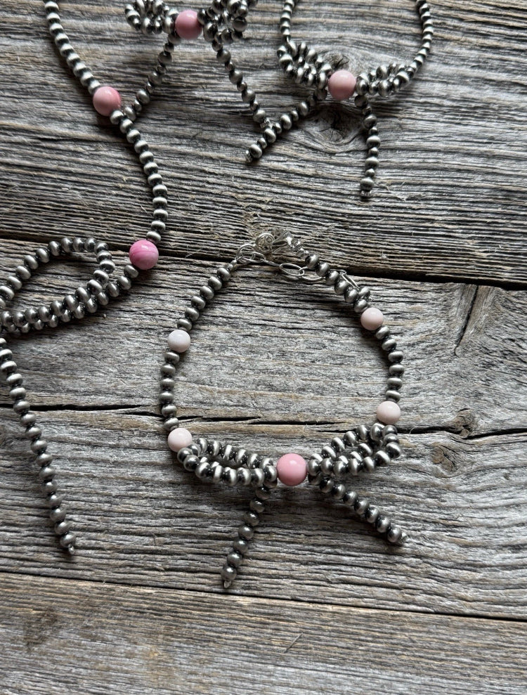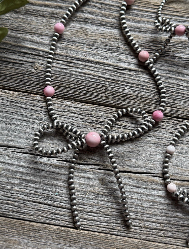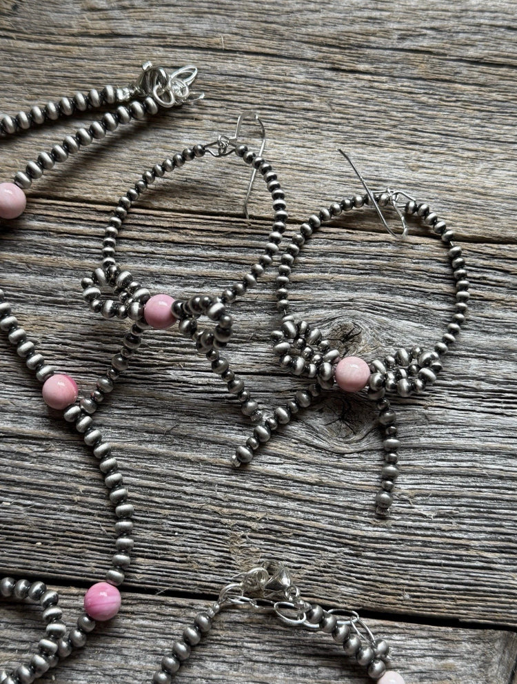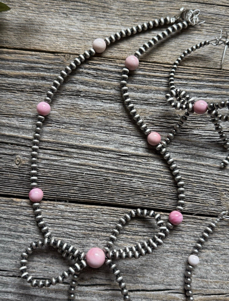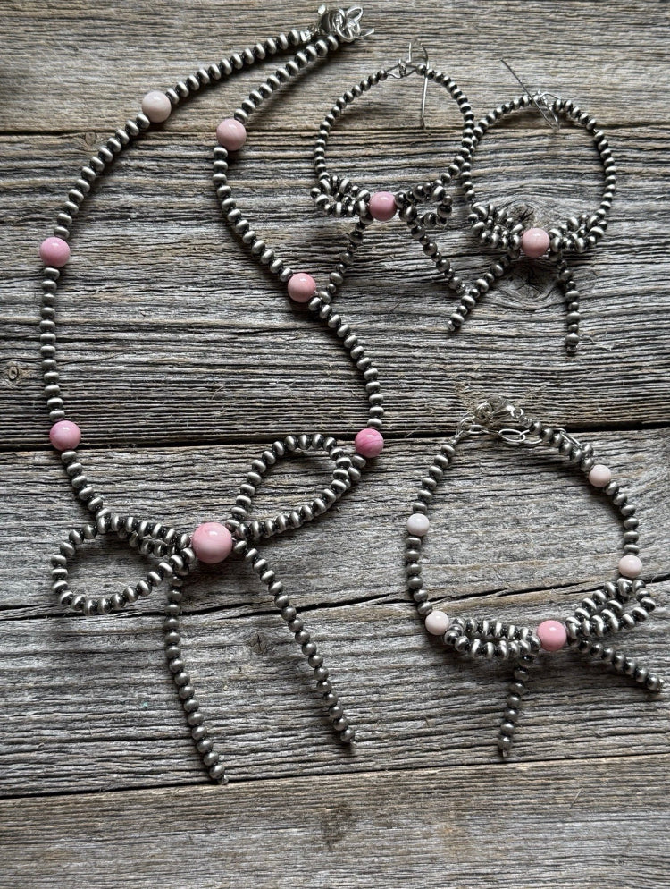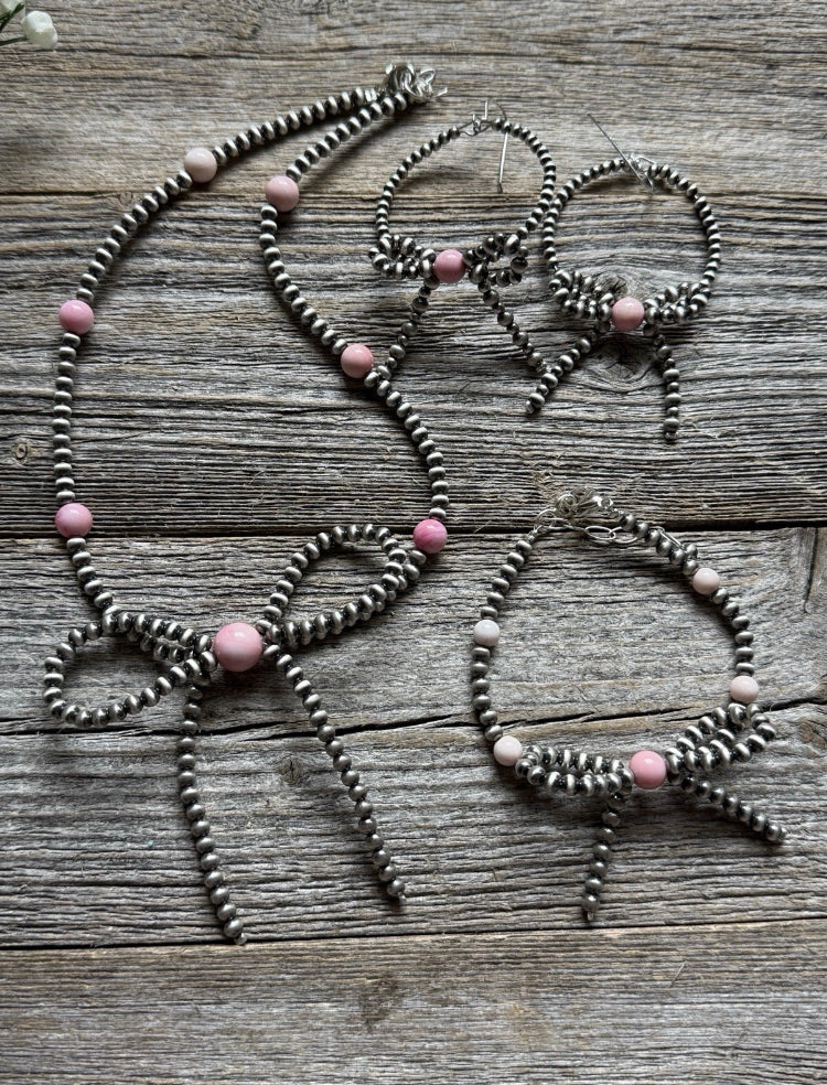 Bow Sterling Silver Pink Conch 4mm Pearls Bead Necklace Earrings Bracelet Set