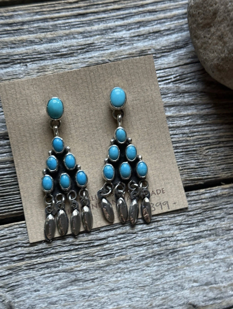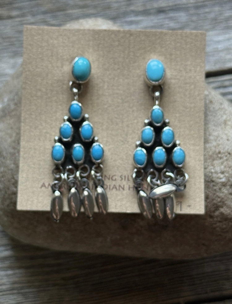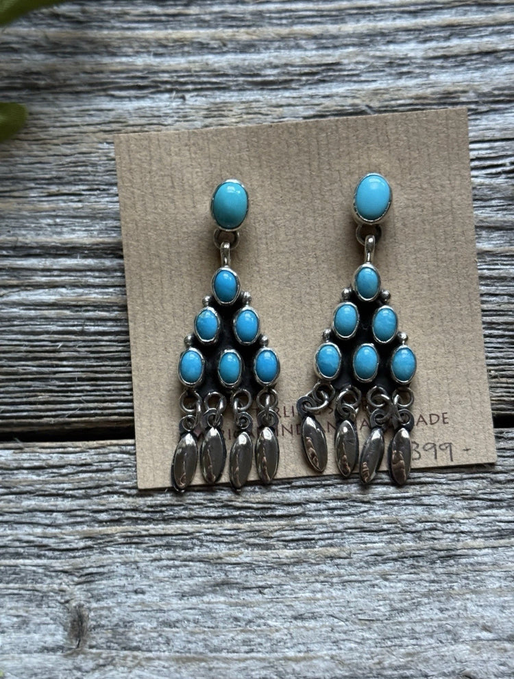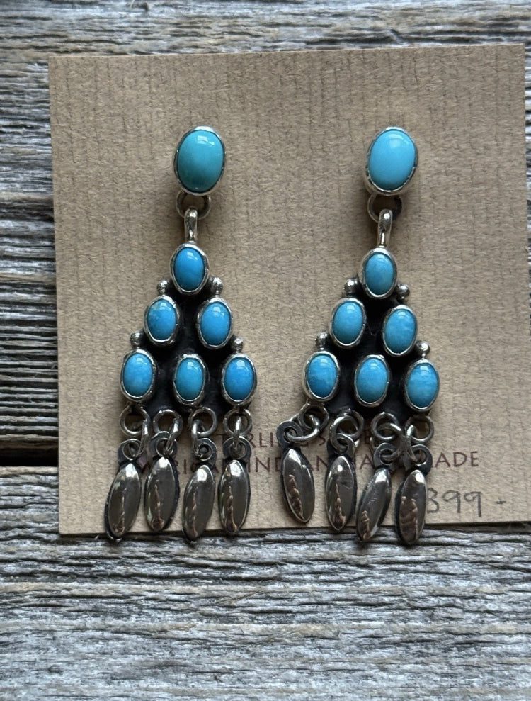 Native American Sterling Silver Turquoise Earrings P Chavez