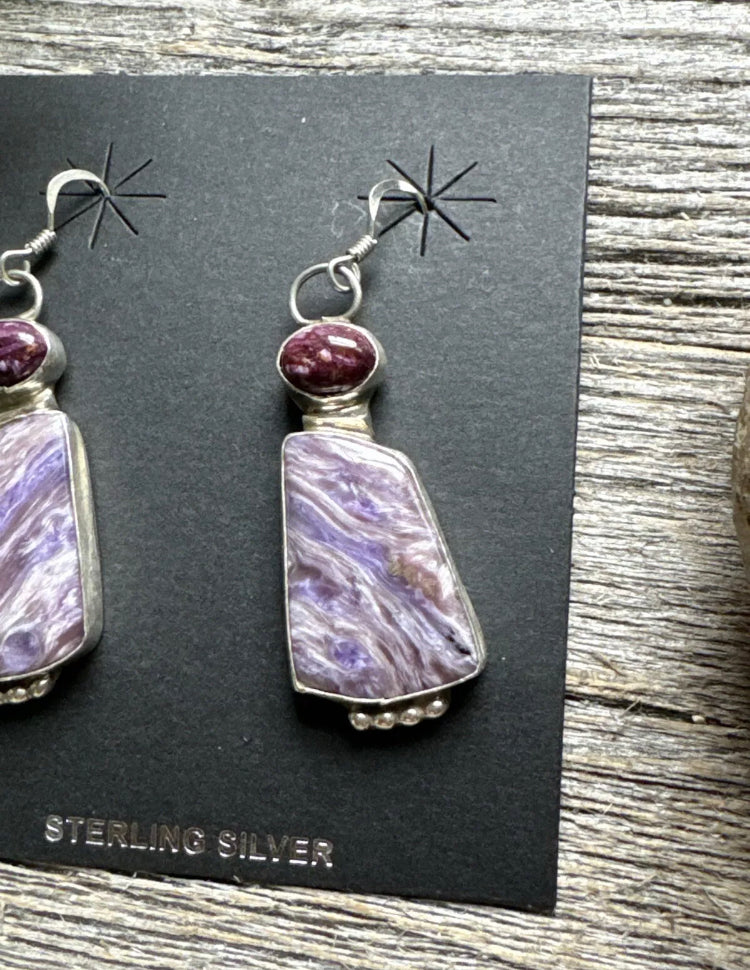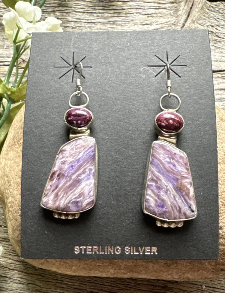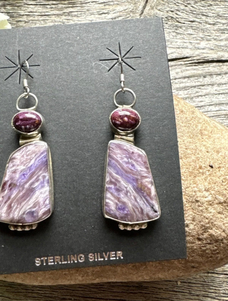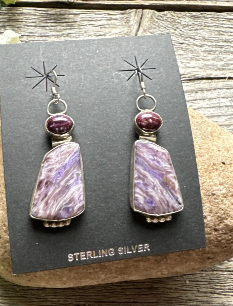 Navajo 925 Sterling Silver Purple Spiny Oyster Charoite Handmade Earrings RS