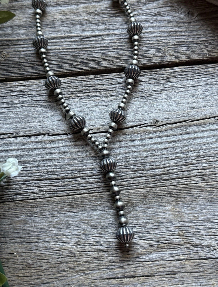 Sterling Silver Corrugated Pearls Bead Lariat Y Necklace. 14 inch- 19 inch