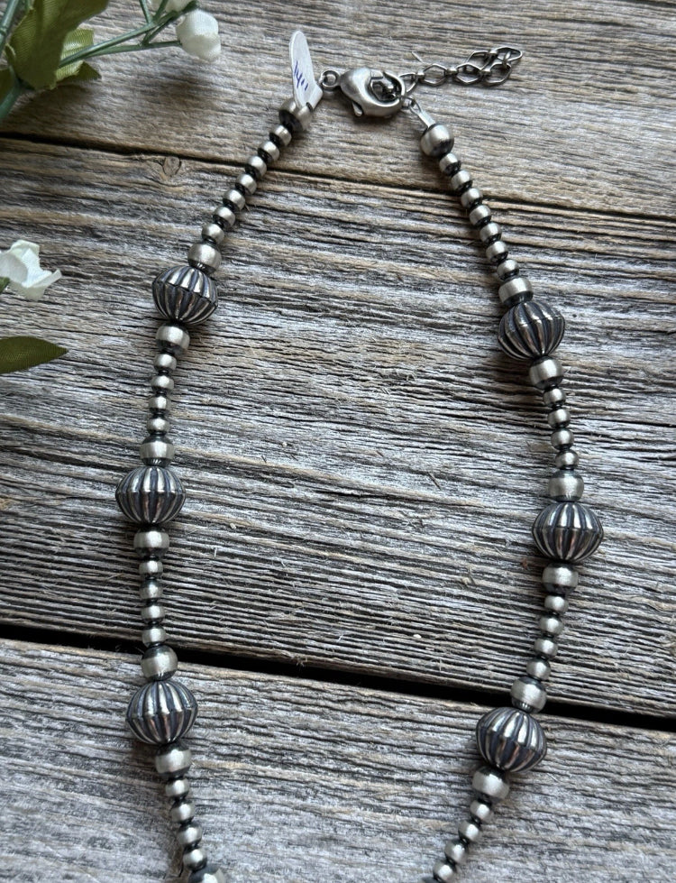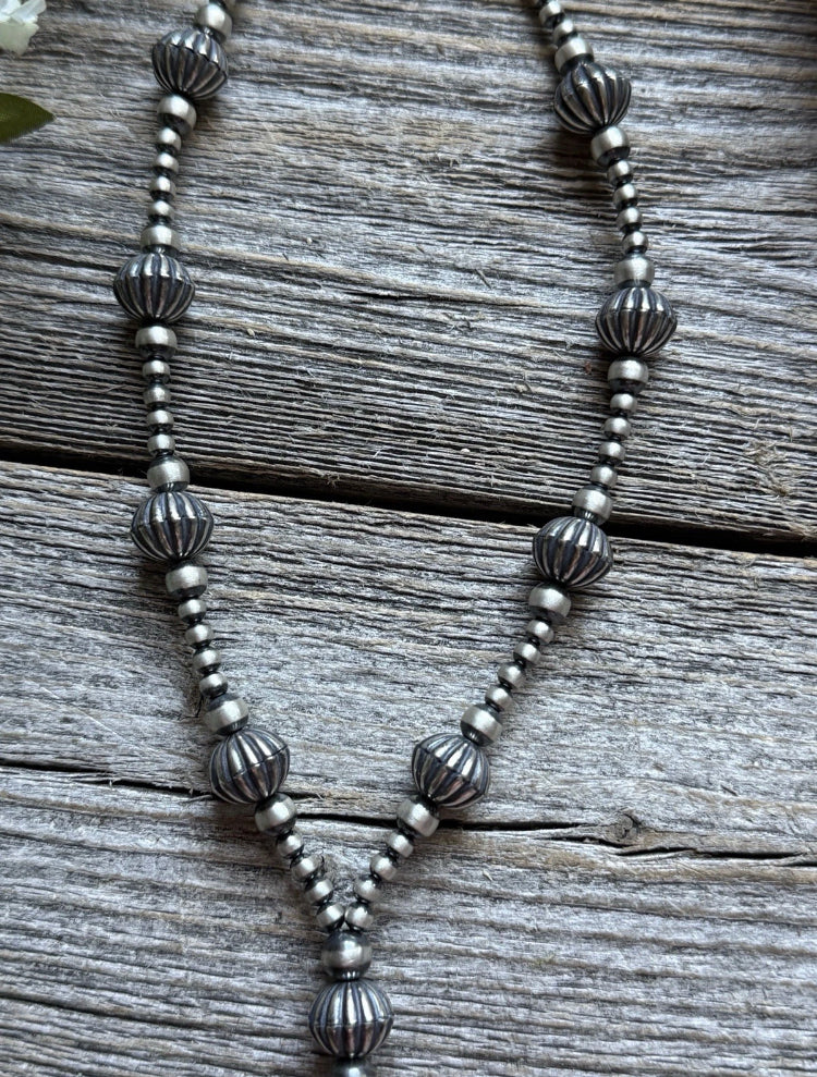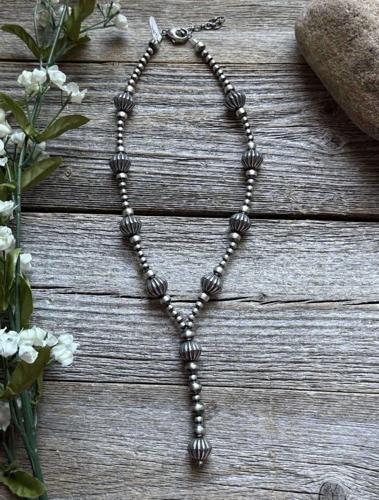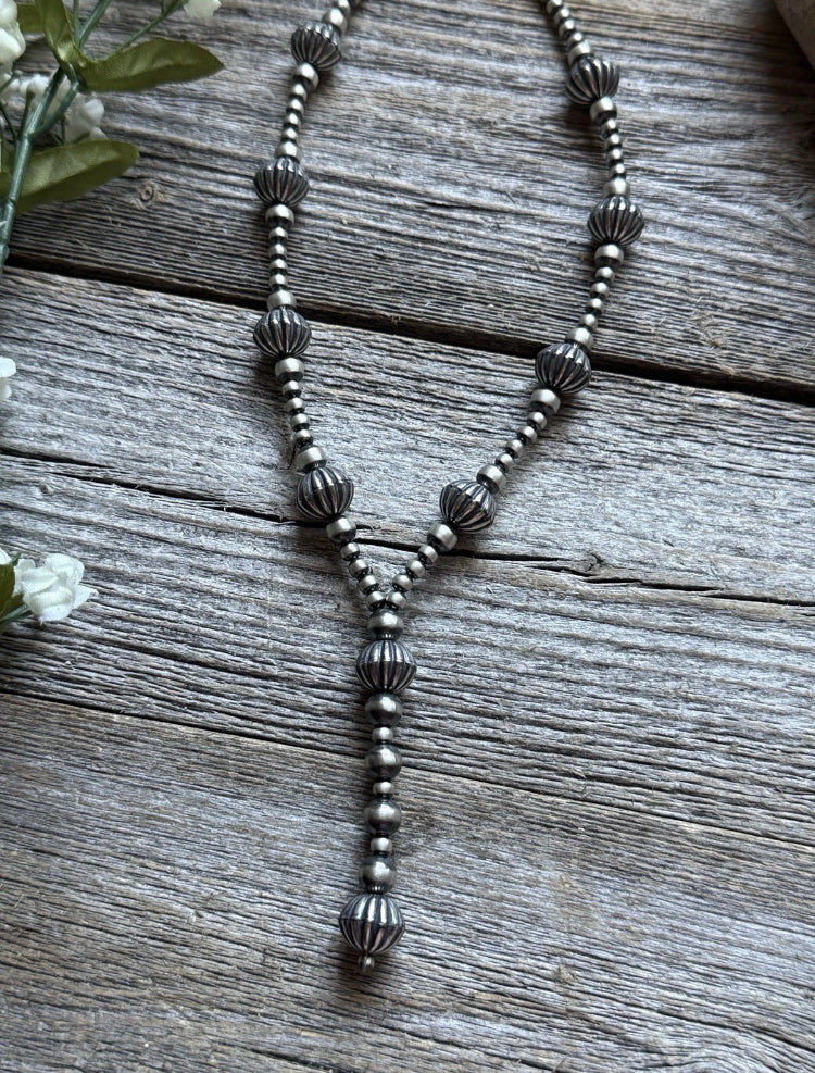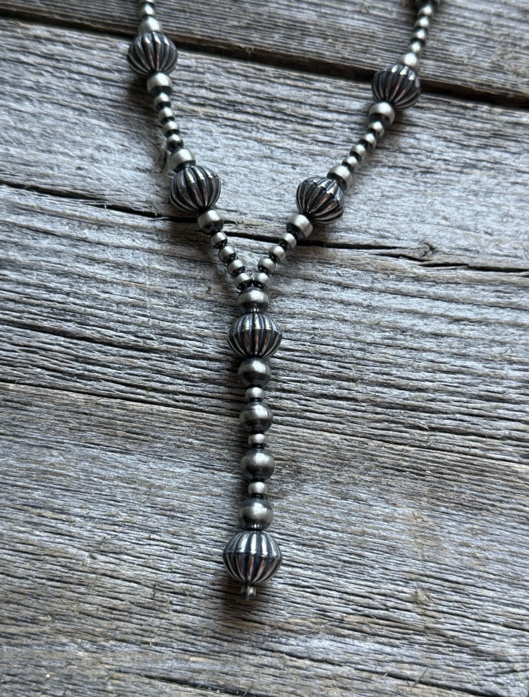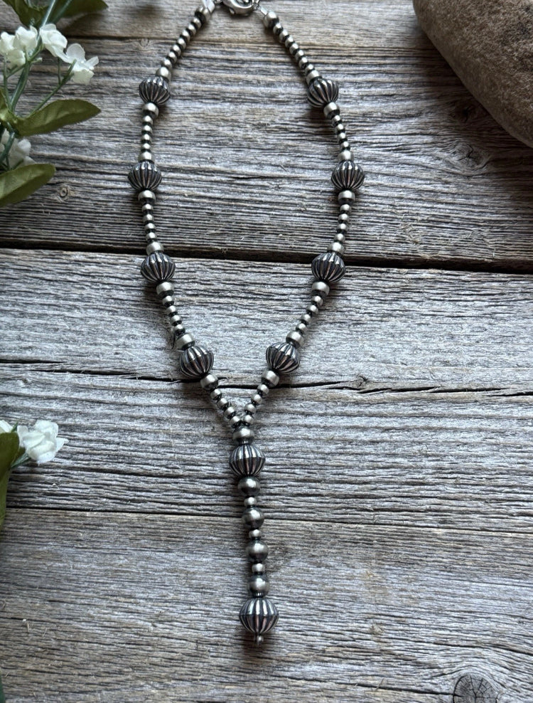 Sterling Silver Corrugated Pearls Bead Lariat Y Necklace. 14 inch