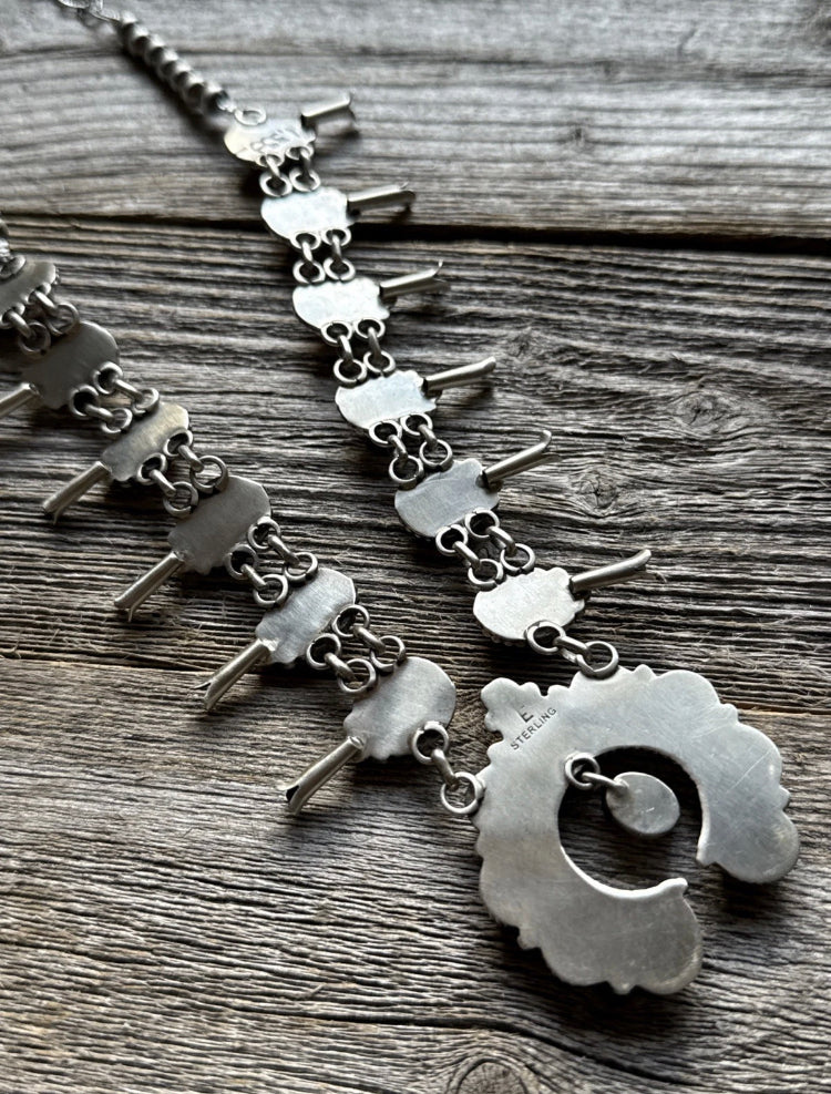 Small Navajo Squash Blossom Sterling Silver Orange Spiny Oyster Necklace Set E