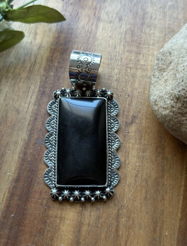 Native American Sterling Silver Black Onyx Pendant