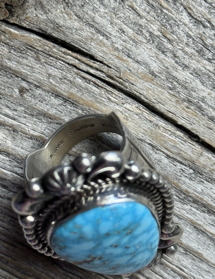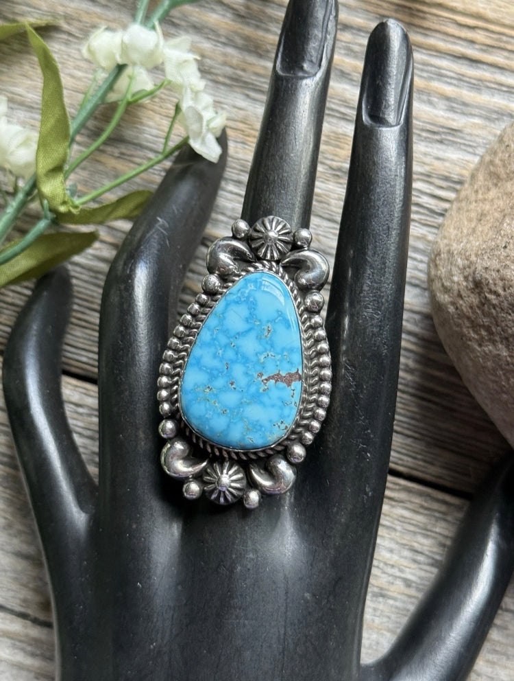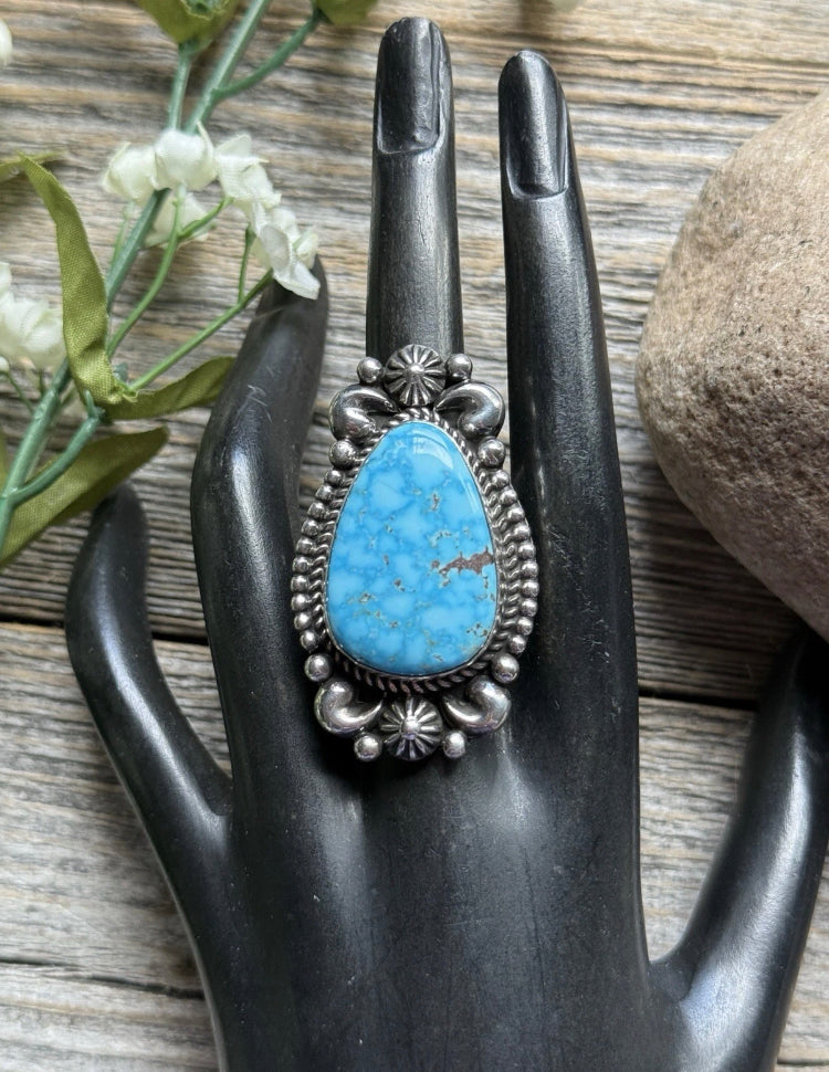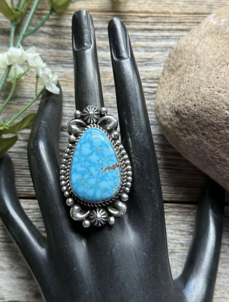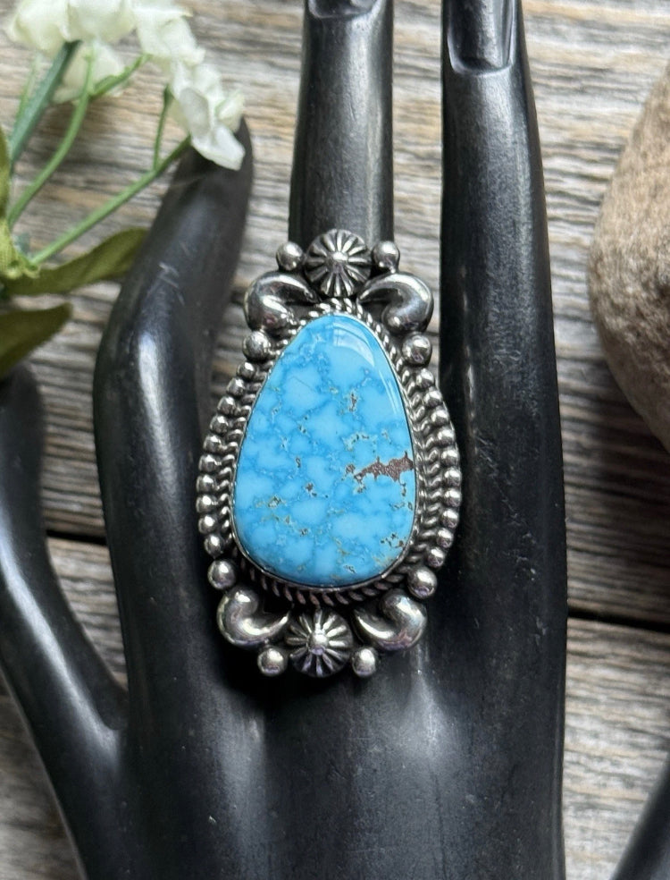 Native American Sterling Silver Blue Turquoise Ring. Size 7.5