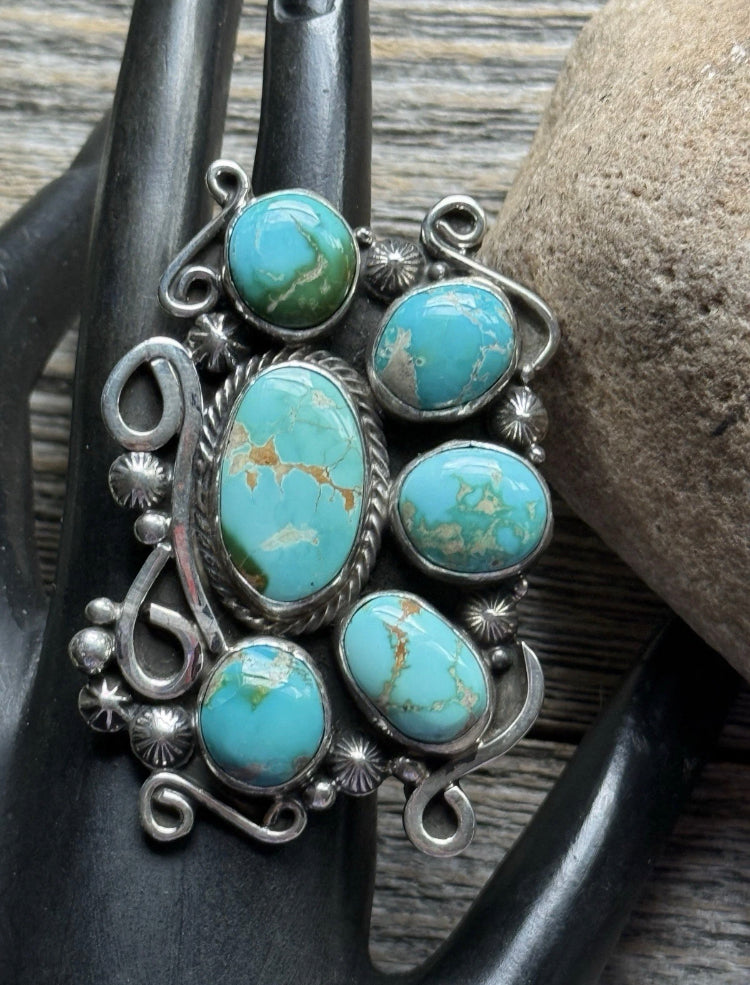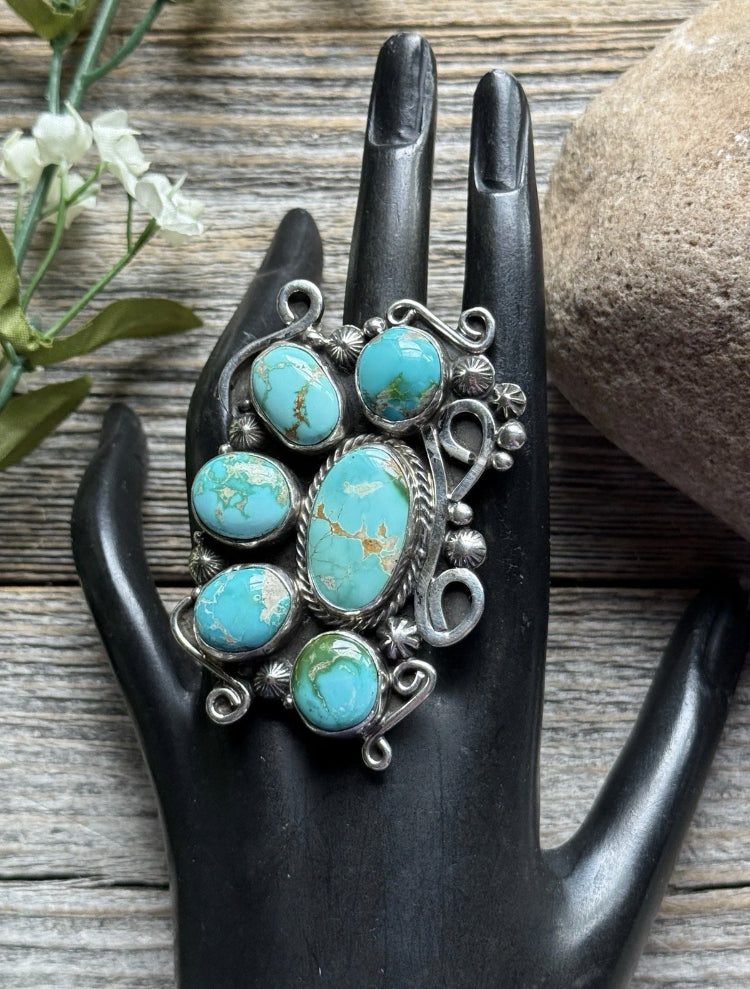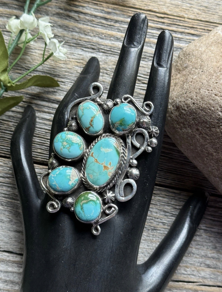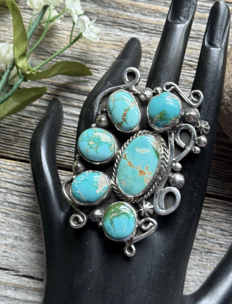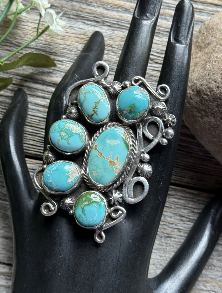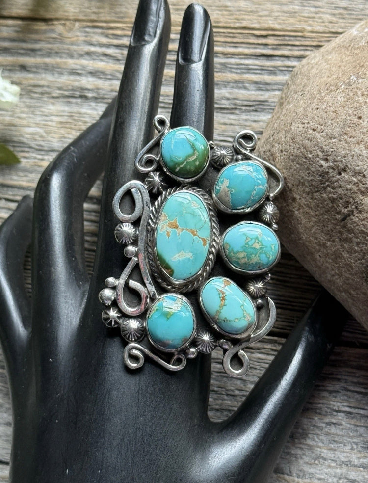 Native American Sterling Silver Turquoise Cluster Ring. Size 8.5 Geneva