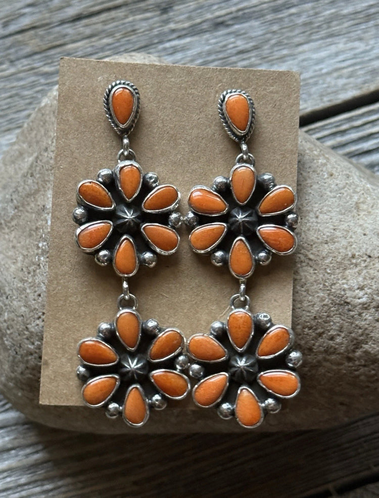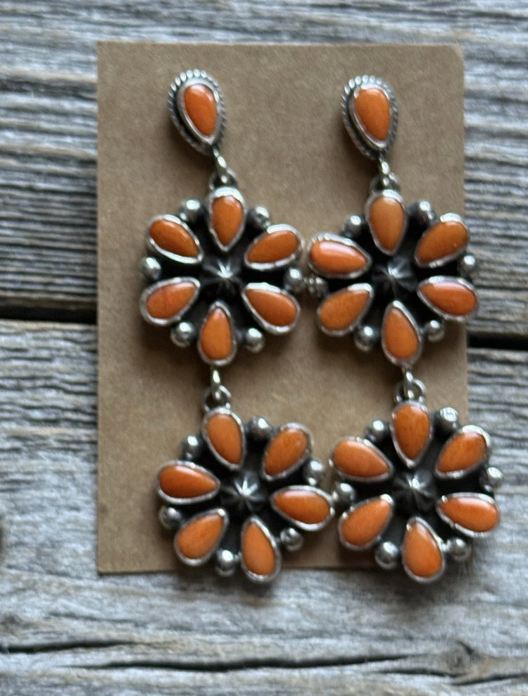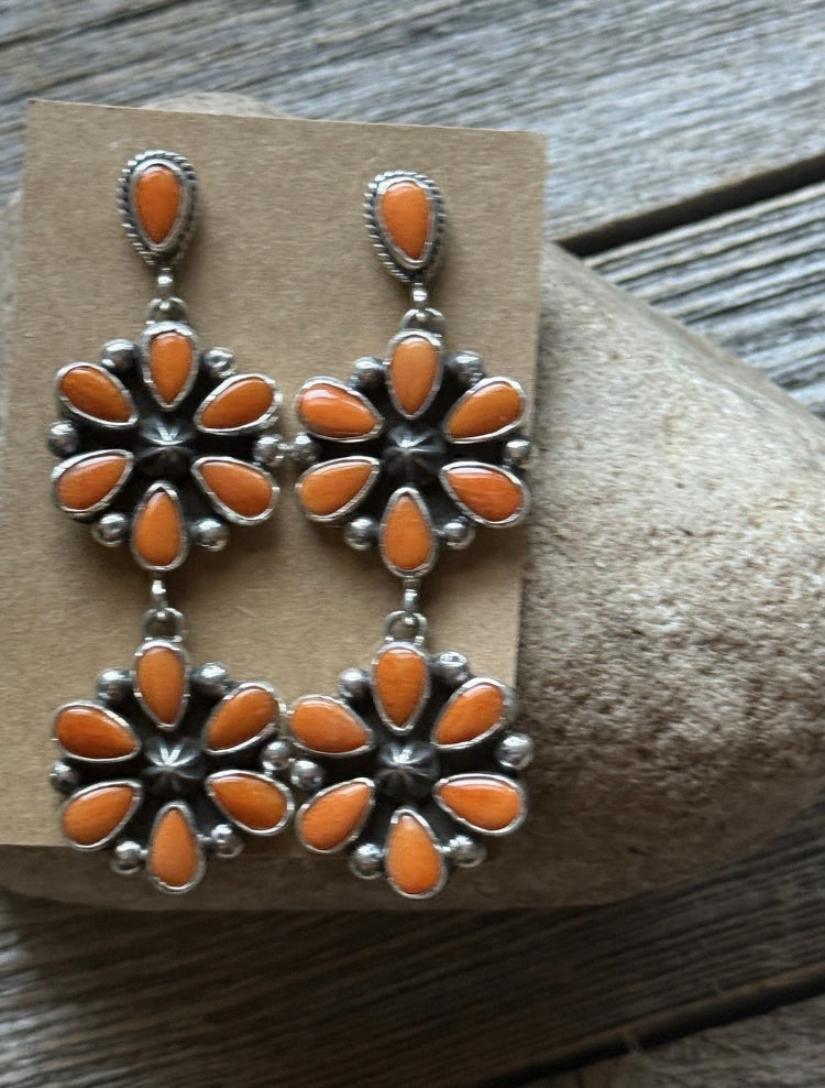 Navajo 925 Sterling Silver Orange Spiny Oyster Cluster Handmade Earrings Artist: LY Measurements: 2.75 Inch by 0.9 inch Best Offers Accepted! |