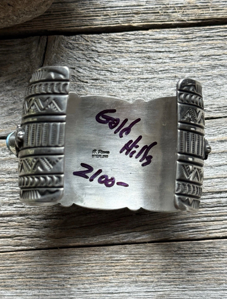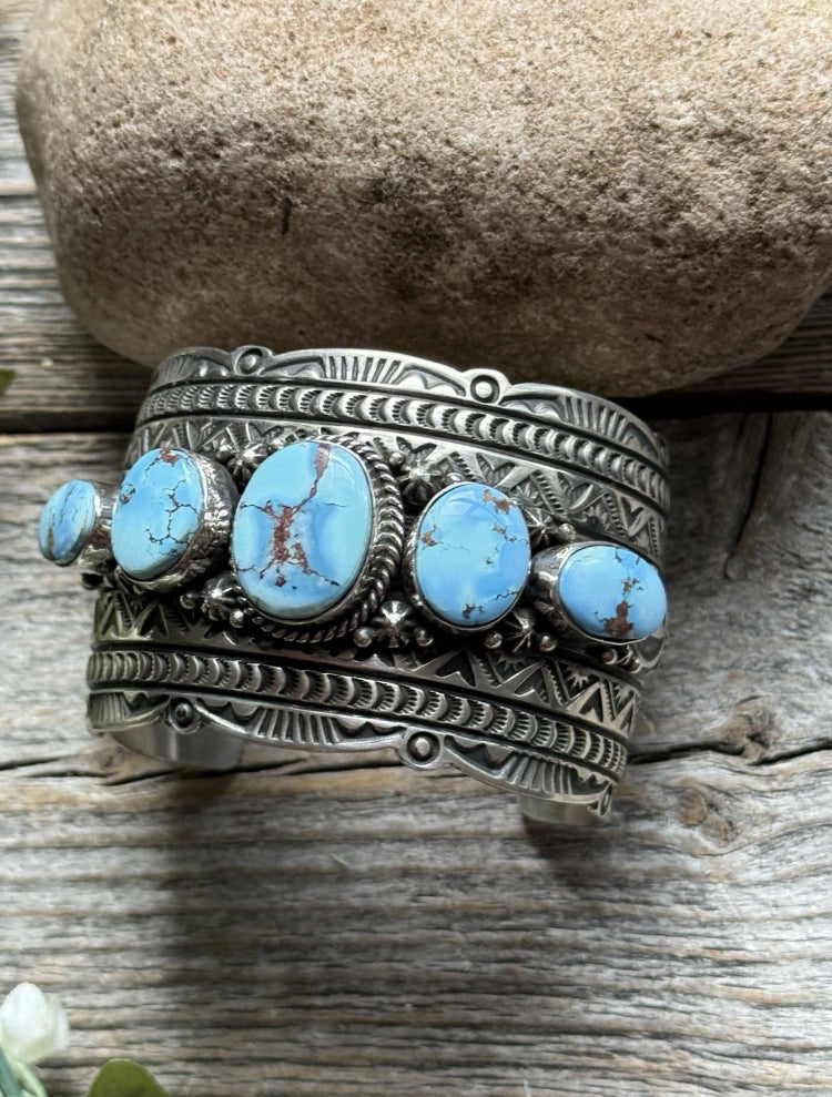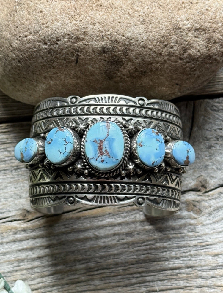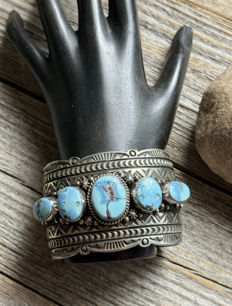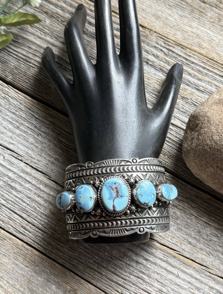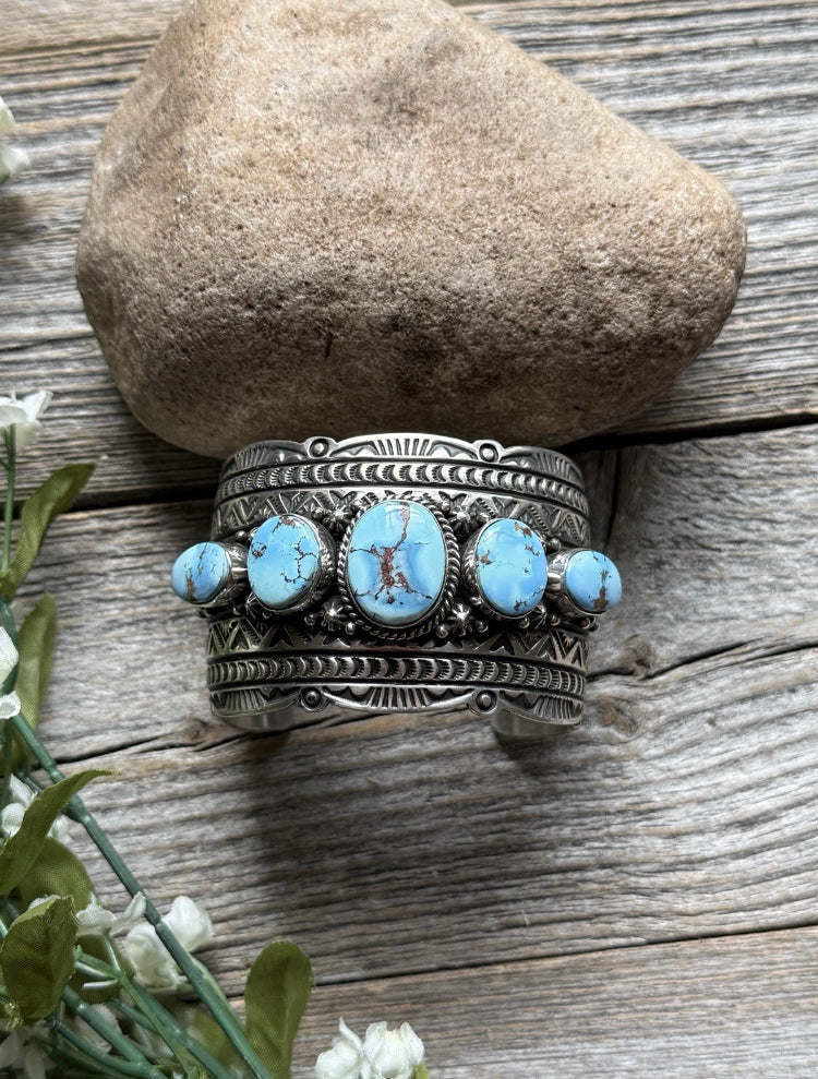 Native American Sterling Silver Sonoran Gold Golden Hill Turquoise Cuff Bracelet.