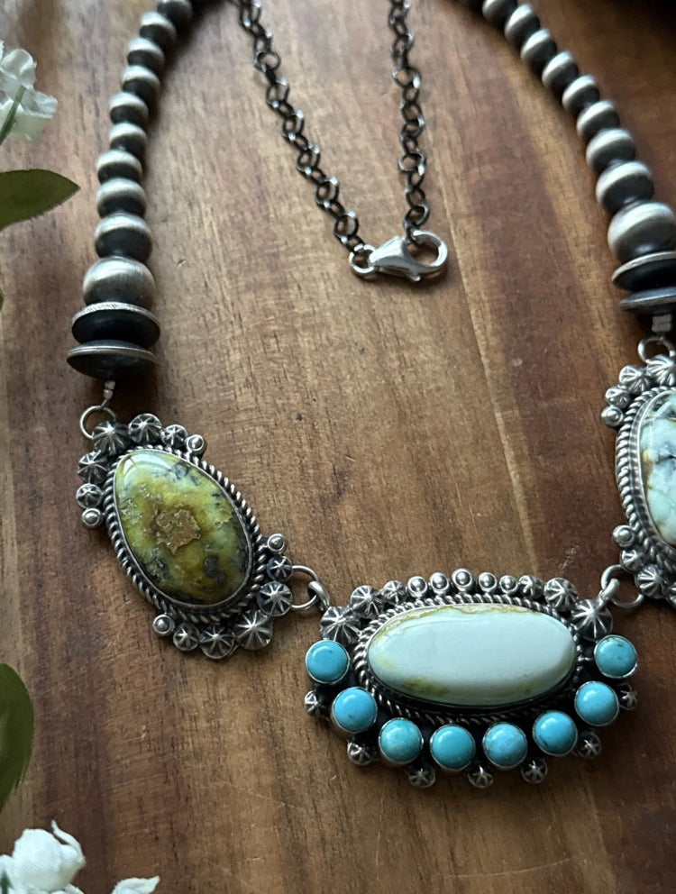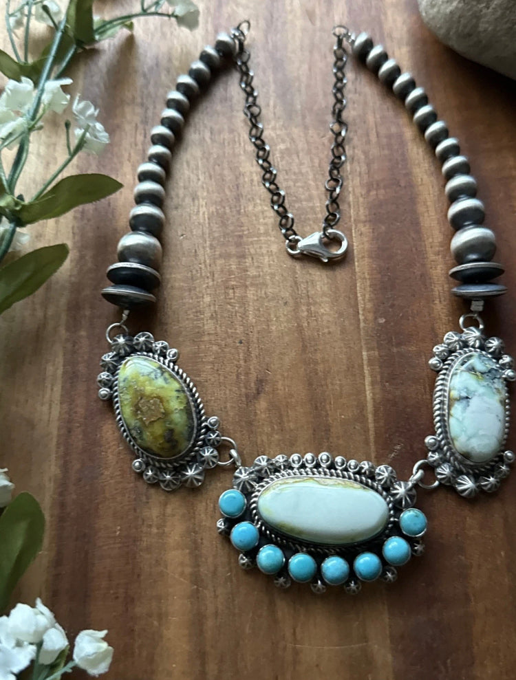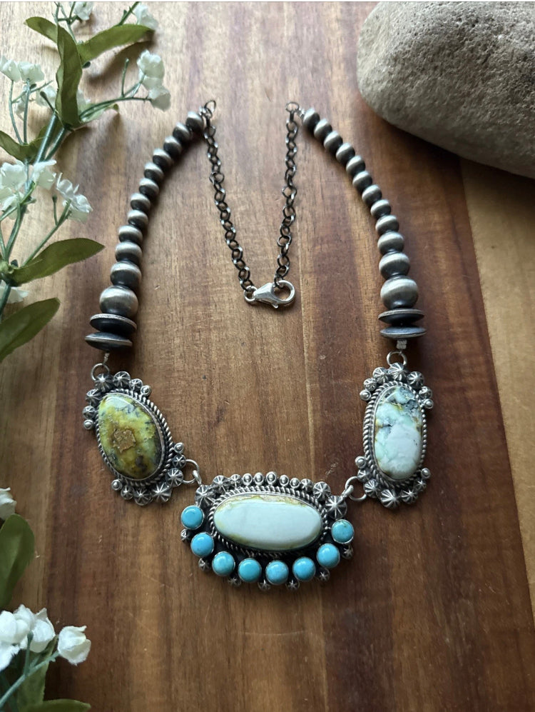 Navajo Sterling Silver Palomino Turquoise Chain Lariat Necklace. Adjustable Length Artist: KY Length: 18 Inch Total length: 20 Inch Center Pendant: 1.25 inch by 2 inch Weight: 81 grams Best Offers Accepted! |