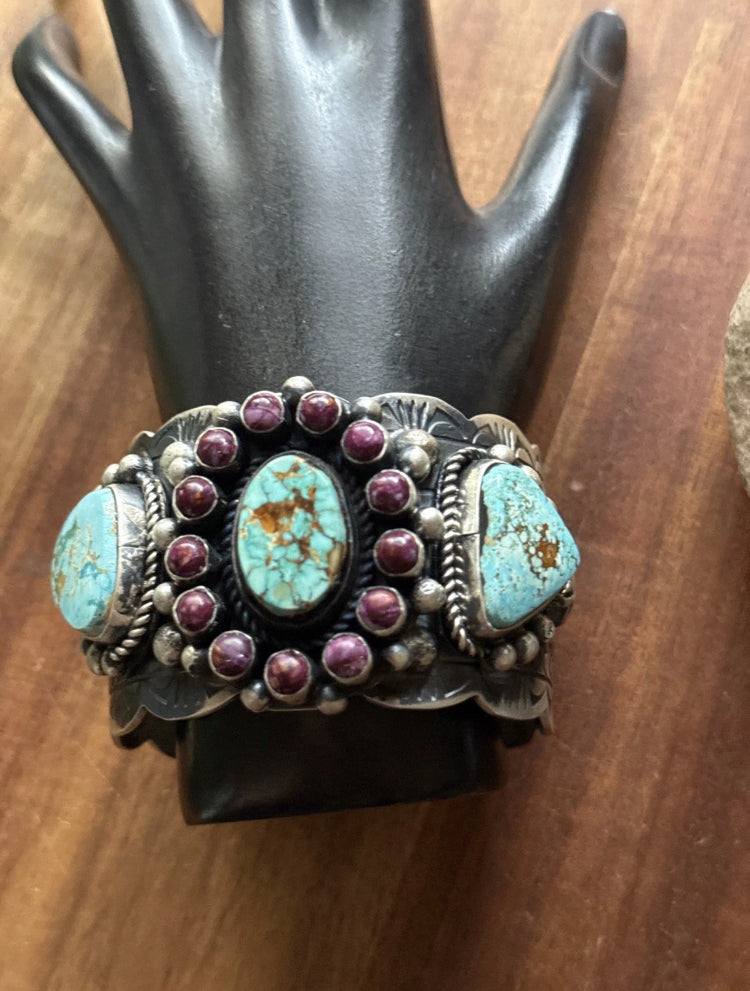 Native American Sterling Silver Purple Spiny Oyster Turquoise Cluster Cuff Bracelet. Artist: RY Weight: 114 grams Gap: 1 inch Width: 1.5 inch Inside Measure: 5.75 inches Fits 6.75 Inch wrist Best Offers Accepted! |