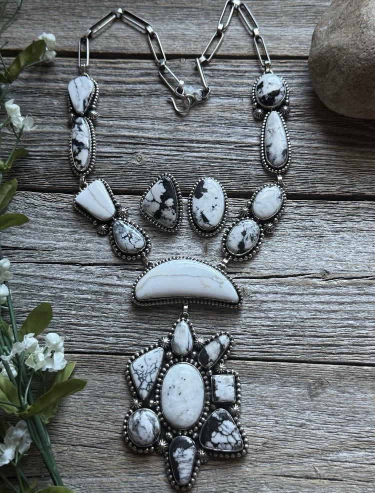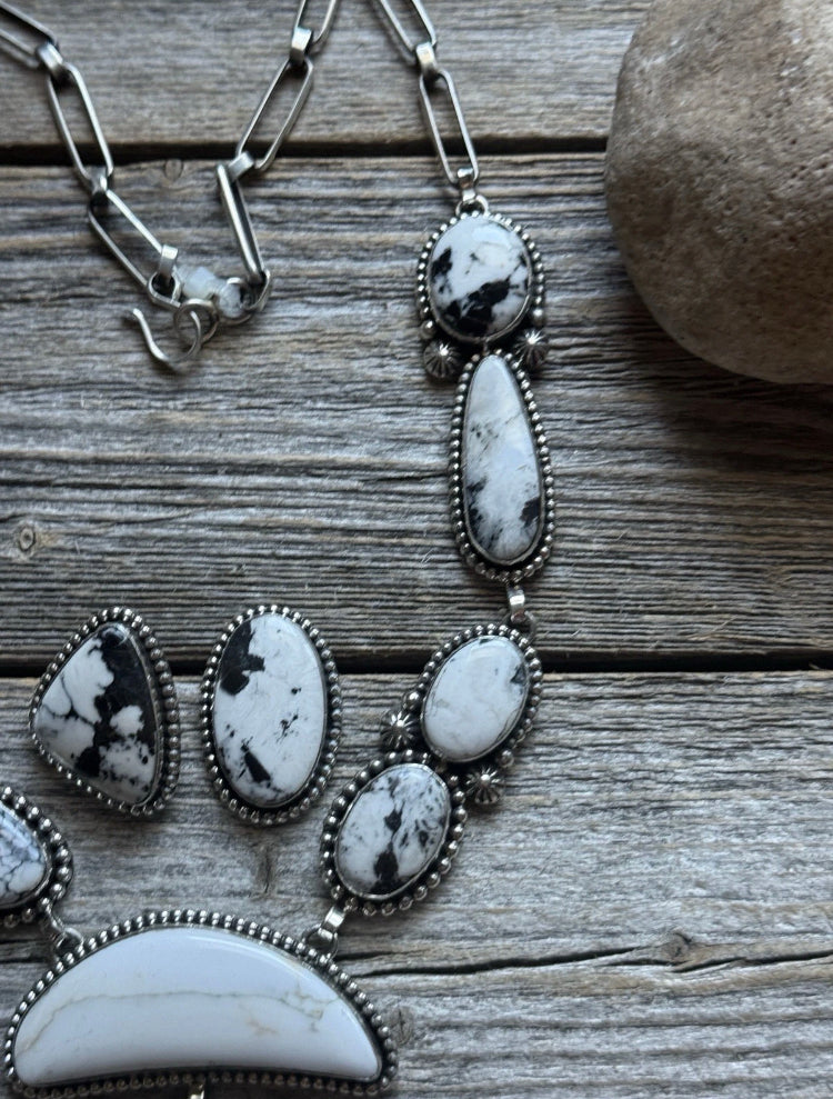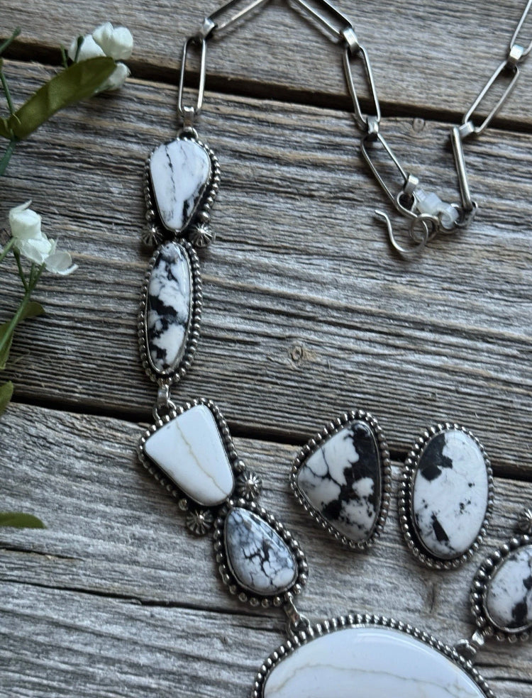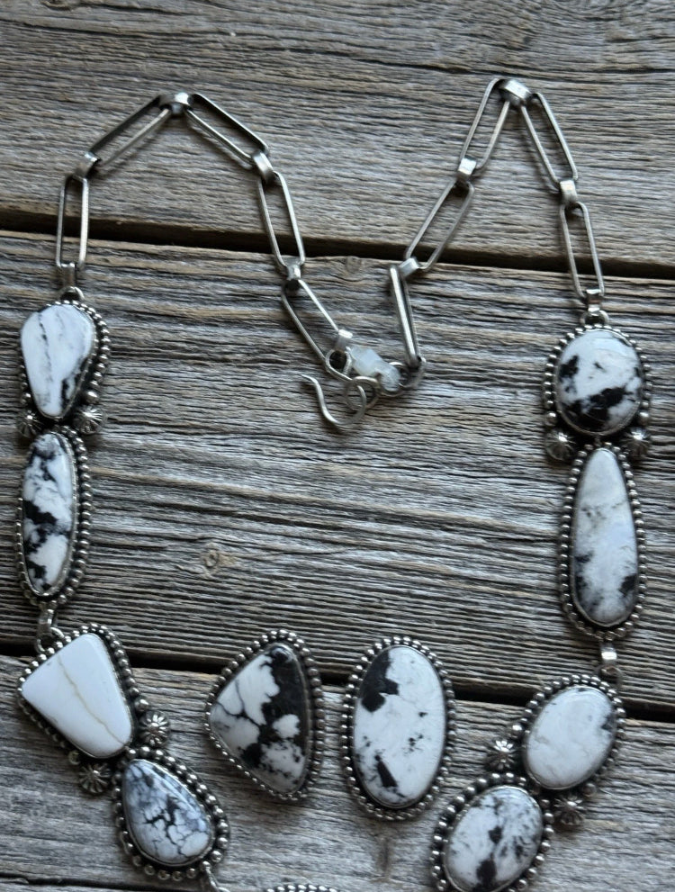 Navajo Sterling Silver White Buffalo Turquoise Lariat Necklace Set Mary Ellen