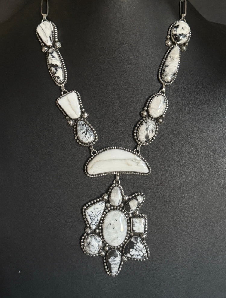 Navajo Sterling Silver White Buffalo Turquoise Lariat Necklace